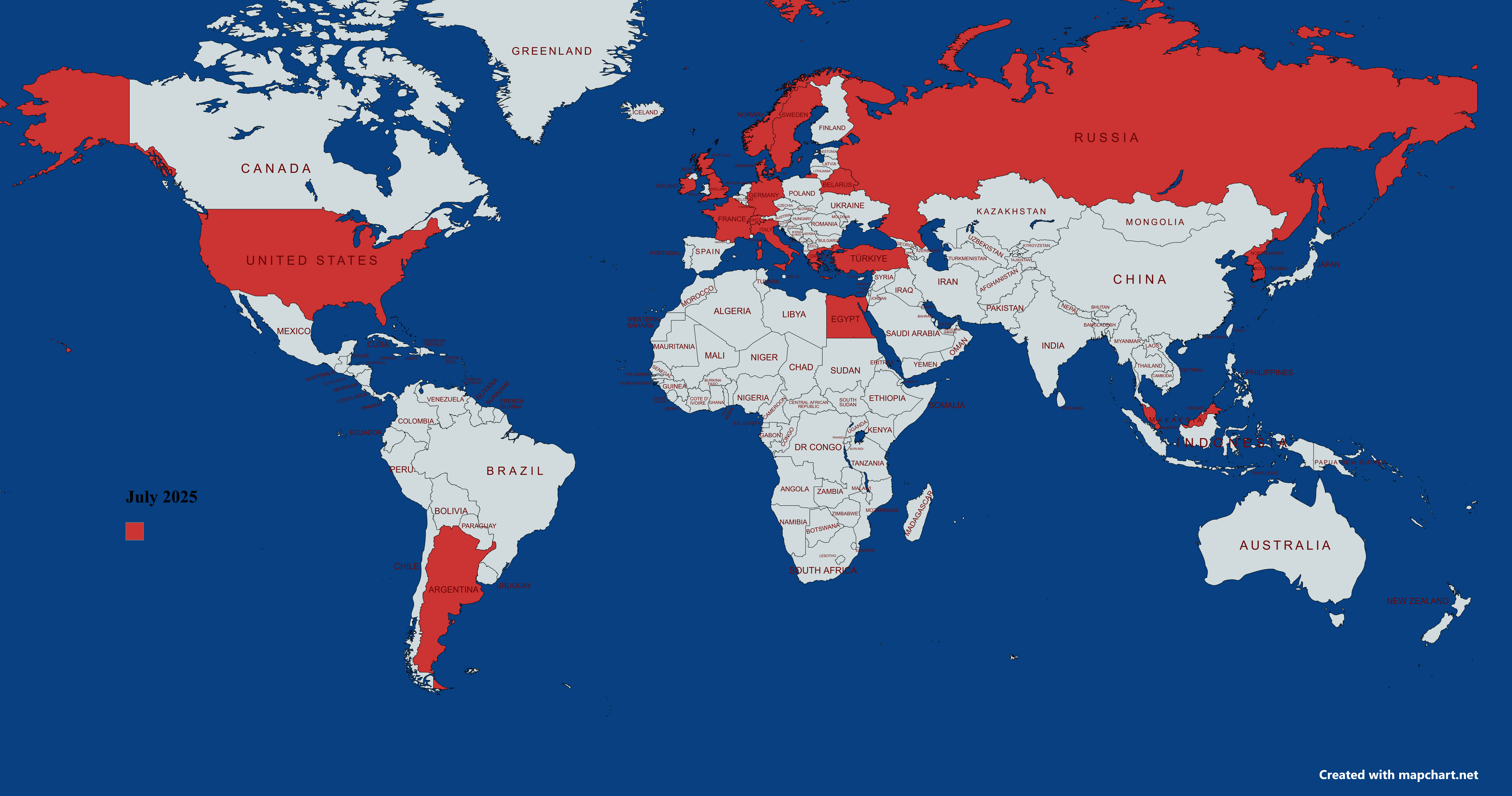 Russia, USA, Malaysia, North Korea, South Korea, Germany, Belarus, Singapore