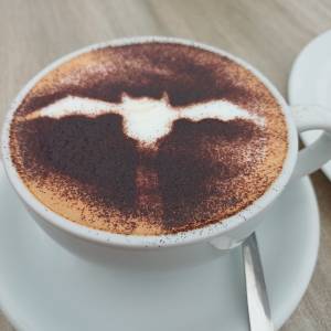 Ooh you must be thrilled with that book post! I love the little bat in your cappuccino!